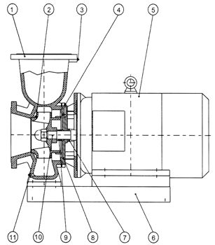 型號意義 ![]() 特點 1、泵為臥式結構,進出口口徑相同,外形緊湊美觀,占地面積小,建筑投入低,如加上防護罩則可置于戶外使用。 2、葉輪直接安裝在電機的加長軸上,軸向尺寸短,結構緊湊,泵與電機軸承配置合理,能有效地平衡泵運轉產生的徑向和軸向負荷,從而保證了泵的運行平穩,振動小、噪音低。 3、軸封采用機械密封或機械密封組合,采用進口鈦合金密封環、中型耐高溫機械密封和采用硬質合金材質,耐磨密封,能有效地延長機械密封的使用壽命。 4、安裝檢修方便,無需拆動管路系統,只要卸下泵聯體座螺母即可抽出全部轉子部件。 5、可根據使用要求即流量和揚程的需要采用泵的串、并聯運行方式。 6、泵的出口可安裝成0°、90°、180°幾個不同方向以滿足不同的連接場合。 工作條件 1、泵系統最高工作壓力≤1.0Mpa,訂貨時請注明系統工作壓力。泵系統工作壓力大于1.0Mpa時應在訂貨時另行提出,以便在制造時泵的過流部分和聯接部分采用更合理的材質。 2、環境溫度<40℃,相對濕度<95%。 3、所輸送介質中固體顆粒體積含量不超過單位體積的0.1%,粒度<0.2mm。 4、使用環境海拔高度不超過1000米,超過時應在訂貨時提出,以便為您提供更可靠的產品 注:如使用介質為帶有細小顆粒,請在訂貨時說明,以便廠家采用耐磨式機械密封。 用途 ISW臥式單級單吸離心泵,供輸送清水及物理化學性質筆似于清水的其他液體之用,適用于工業和城市給排水、高層建筑增壓送水、園林噴灌、消防增壓、遠距離輸送、暖通制冷特循環、浴室等冷暖水循環水泵環增壓及設備配套,使用溫度T<80℃。 結構說明 ![]() 1.泵體:降低液流速度,使速度能轉換成壓能。 2.葉輪:在泵中起主導作用,葉輪中的片強迫液體旋轉,液體在離心力作用下向四周甩出。 3.取壓塞:安裝壓力表監控泵的正常啟動。 4.放氣閥:排放泵內氣體,確保泵的正常啟動。 5.Y/Y2系列電機:泵的驅動部分,采用直聯形式。 6.底盤:泵的固定部分,確保泵安裝的穩固, 7.擋水圈:防止因密封漏水而使用電機進水。 8.泵蓋:精心設計,與電機同端蓋,軸向尺寸縮短,結構簡單。 9.機械密封:采用不銹鋼、碳化鎢、氟橡膠等材料制成,密封性能好、壽命長、不滲漏。 10.泵軸:與電機同軸,同心度高,使泵運行平穩無噪音和振動現象。 11.放水塞:維護或長期不用時,將泵內液體放干。 因產品生產批次、型號不同,產品圖片及安裝尺寸僅供參考,詳情可聯系我們的銷售人員了解更多ISW32-125臥式管道熱水泵相關信息!