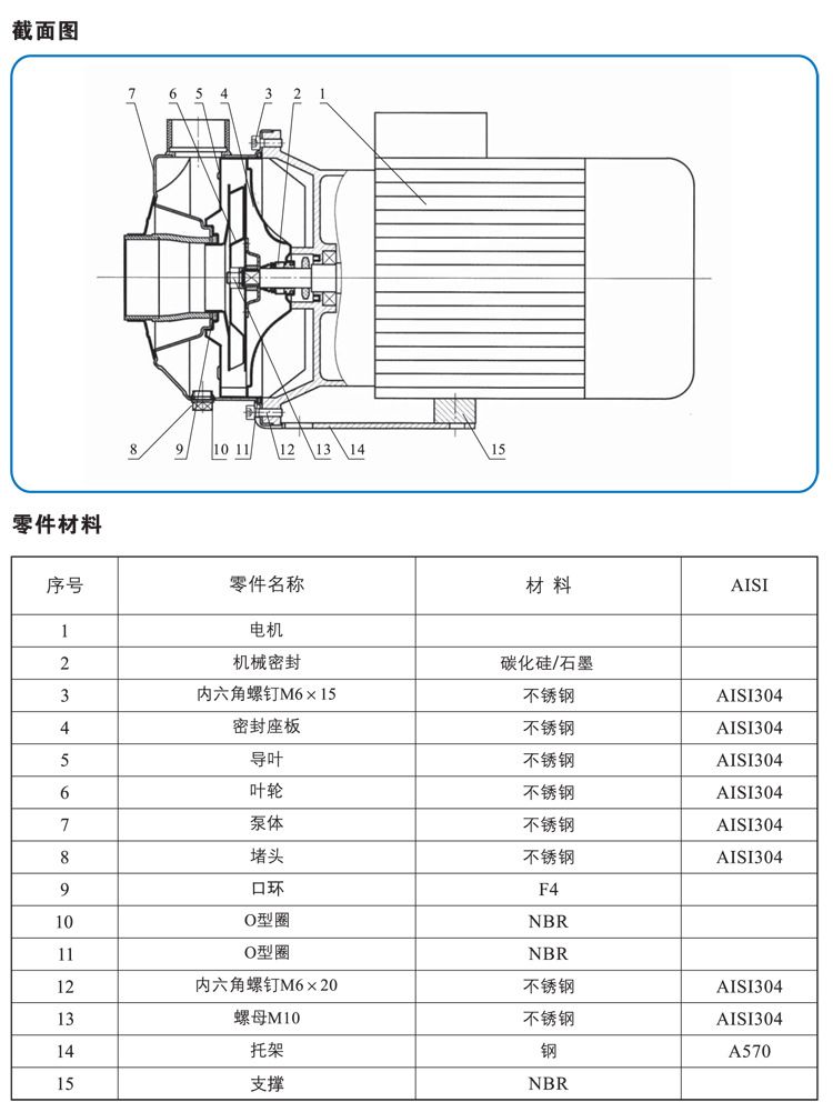 產品介紹 MS100/1.1SSC臥式清水離心泵為單級葉輪離心泵,具有軸向吸水,徑向排水的特點,結構緊湊,水泵與電機直接連接,同軸安裝,連接方便,配有螺紋進,出水口,重量輕,主要零部件均采用薄板沖壓件結構,耐輕腐蝕,過流部件采用AISI304或AISI316不銹鋼材料。 應用范圍: .工,民用清水或其它液體的增壓,輸送 .水處理系統 .水循環系統 .農業灌溉 .其它領域 工作條件: 稀薄、干凈、非易燃易爆并不固體顆粒和纖維的液體 可輸送輕腐蝕性介質(與介質中氯離子含量,酸和堿的濃度,是否對橡膠和機械密封摩擦付材料生產腐蝕等情況有關) 所輸送介質的密度不能大于清水,粘度要接近于水。否則需配用大功率電機 液體溫度;-10°C至+85°C 環境溫度;最高+40°C 海拔;最高1000M 最大工作壓力;8巴. ![]() ![]() ![]() 因產品生產批次、型號不同,產品圖片及安裝尺寸僅供參考,詳情可聯系我們的銷售人員了解更多MS100/1.1SSC臥式清水離心泵相關信息!