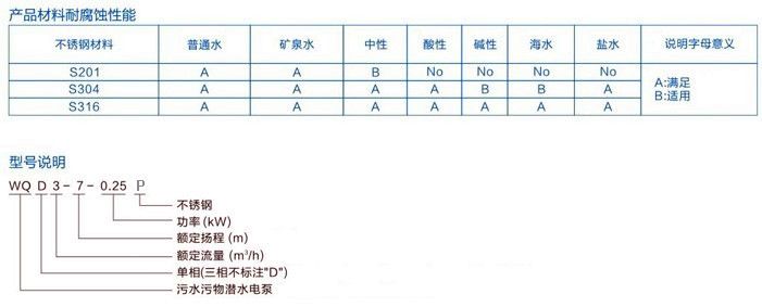 WQD3-7-0.25S不銹鋼污水潛水泵 |