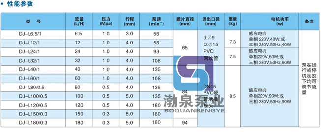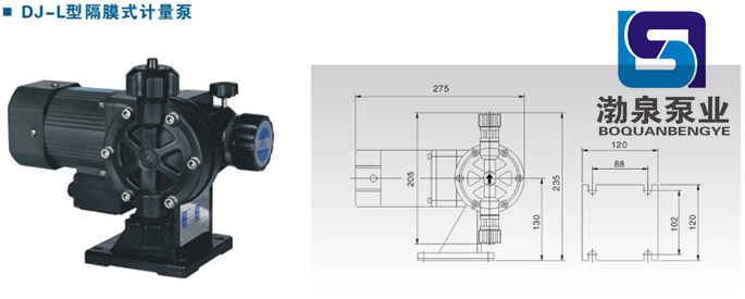 產品介紹 DJL32/1不銹鋼隔膜式計量泵是由電機驅動的機械隔膜計量泵,適用于底壓力場合的流體精確計量,有多種材質泵頭可選,膜片統一采用多層復合PTFE材質。因其具有很高的計量精度和穩定性能及極高的使用工求,而廣泛應用于污水處理,食品劑添加,各種特殊介質的輸送。 DJL32/1不銹鋼隔膜式計量泵工作條件: 流量范圍:0-500L/H 壓力范圍:0-1.0MPa 驅動方式:電機驅動 控制方式:手動、自動控制 環境溫度: -30℃ ---60℃ 電機: 二相、三相標準電機或防爆電機 功率:40W,60W 防護等級:IP54 材料: 計量泵頭: 聚氯乙烯、SUS304、SUS316、聚四氟乙烯 計量閥: 聚氯乙烯、SUS304、SUS316、聚四氟乙烯 閥球: 二氧化硅、SUS304、SUS316、陶瓷 密封: 聚四氟乙烯、聚氯乙烯。 DJL32/1不銹鋼隔膜式計量泵產品特點: 構造上,完全無泄露。 可用PVC、PTFE、PVDF、304不銹鋼、316不銹鋼等作為泵頭材料。 適用于各種耐酸堿藥液。 可以安裝于藥槽上。 安裝容易、維修、保養簡便。 操作安全性能高。 運轉中流量隨意調整。 ![]() 因產品生產批次、型號不同,產品圖片及安裝尺寸僅供參考,詳情可聯系我們的銷售人員了解更多DJL32/1不銹鋼隔膜式計量泵相關信息!