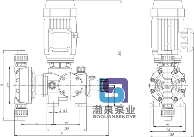 產品介紹 KD60/0.6 耐酸堿機械隔膜式計量泵產品介紹 流量范圍:0-180 L/H 壓力范圍: 0-0.8 MPA 電機功率: 180W,220V / 380V / 420V , 50/60Hz 驅動系統: 兩相、三相標準電機或防爆電機 流量控制: 手動控制, 防護等級: IP55 材料 泵頭: SUS304, SUS316, PVC, PTFE 隔膜: PTFE 單向閥: SUS304, SUS316, PVC, PTFE 閥球: ZrO2, SUS304, SUS316, 陶瓷 工作條件 環境溫度: -30℃ --- 80℃ 計量泵技術參數