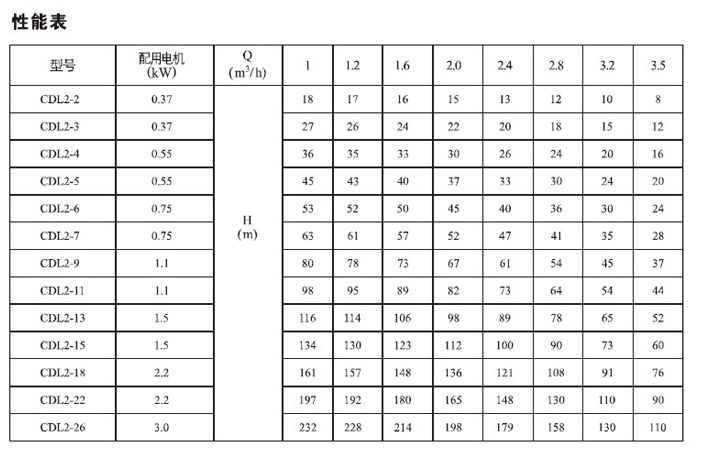 產品介紹 CDLF2-9FSWSC 立式耐酸堿多級離心泵是一種多功能產品,可以輸送從自來水到工業液體的各種不同介質,適應于不同溫度、流量和壓力范圍,CDL不銹鋼多級泵適用于無腐蝕性液體,CDLF適用于輕度腐蝕性液體。 水:水廠過濾與輸送、水廠分區送水、主管增壓、高層建筑增壓。 工業增壓:流程水系統、清洗系統、高壓沖洗系統、消防系統。 工業液體輸送:冷卻和空調系統、鍋爐給水和冷凝系統、機床配套、酸和堿。 水處理:超濾系統、反滲透系統、蒸餾系統、分離器、游泳池。 灌溉:農田灌溉、噴灌、滴灌。 運行條件 稀薄、干凈、非易燃易爆并不含固體顆粒或纖維的液體。 液體溫度:常溫型 -15℃至+70℃ 熱水型 -15℃至+120℃ 環境溫度:最高+40℃ 海拔:最高1000m CDLF2-9FSWSC 立式耐酸堿多級離心泵為安裝標準電機的非自吸式多級離心泵,電機軸通過泵頭用軸聯器直接與泵軸連接,拉桿螺栓將耐壓筒、過流部件固定在泵頭和進出水段之間,泵進出水口在泵底同一直線上;本泵可根據需要配置智能保護器,對泵干轉、缺相、過載等進行有效保護。 電機 電機為全封閉,風冷式二極標準電機。 防護等級:IP55 絕緣等級:F 標準電壓, 50Hz ![]() ![]() ![]() 因產品生產批次、型號不同,產品圖片及安裝尺寸僅供參考,詳情可聯系我們的銷售人員了解更多CDLF2-9FSWSC 立式耐酸堿多級離心泵相關信息!