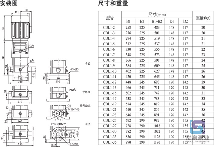 產品介紹 CDLF1-9FSWSC 不銹鋼立式多級循環泵是一種多功能產品,可以輸送從自來水到工業液體的各種不同介質,適應于不同溫度、流量和壓力范圍,CDL不銹鋼多級泵適用于無腐蝕性液體,CDLF適用于輕度腐蝕性液體。 水:水廠過濾與輸送、水廠分區送水、主管增壓、高層建筑增壓。 工業增壓:流程水系統、清洗系統、高壓沖洗系統、消防系統。 工業液體輸送:冷卻和空調系統、鍋爐給水和冷凝系統、機床配套、酸和堿。 水處理:超濾系統、反滲透系統、蒸餾系統、分離器、游泳池。 灌溉:農田灌溉、噴灌、滴灌。 運行條件 稀薄、干凈、非易燃易爆并不含固體顆粒或纖維的液體。 液體溫度:常溫型 -15℃至+70℃ 熱水型 -15℃至+120℃ 環境溫度:最高+40℃ 海拔:最高1000m CDLF1-9FSWSC 不銹鋼立式多級循環泵為安裝標準電機的非自吸式多級離心泵,電機軸通過泵頭用軸聯器直接與泵軸連接,拉桿螺栓將耐壓筒、過流部件固定在泵頭和進出水段之間,泵進出水口在泵底同一直線上;本泵可根據需要配置智能保護器,對泵干轉、缺相、過載等進行有效保護。 電機 電機為全封閉,風冷式二極標準電機。 防護等級:IP55 絕緣等級:F 標準電壓, 50Hz ![]() 因產品生產批次、型號不同,產品圖片及安裝尺寸僅供參考,詳情可聯系我們的銷售人員了解更多CDLF1-9FSWSC 不銹鋼立式多級循環泵相關信息!