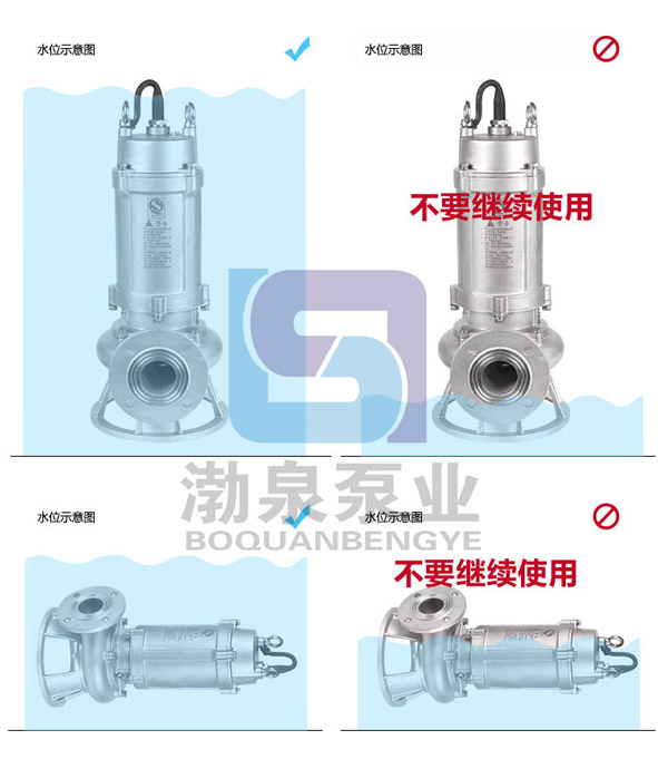 使用條件: 1、以葉輪中心為準(zhǔn),潛入水下深度不得超過5m。 2、輸送介質(zhì)溫度不高于100℃。 3、輸送介質(zhì)的PH值304(4-10),316(2-13).