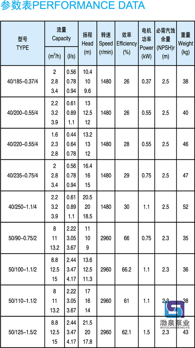產(chǎn)品介紹 KQL40/235-0.75/4 立式空調(diào)循環(huán)泵供輸送不含固體顆粒的清水及物理化學(xué)性質(zhì)類似于水的液體之用。同時(shí)根據(jù)使用溫度、介質(zhì)等不同在ISG型管道離心泵基礎(chǔ)上派出適用熱水、高溫、腐蝕性化工泵、油泵。該產(chǎn)品具有同效節(jié)能、噪音低、性能穩(wěn)定等特點(diǎn)。本單位科技人員聯(lián)合國(guó)內(nèi)水泵專家選用優(yōu)秀水力模型,采用IS型離心泵之性能參數(shù),在一般立式泵的基礎(chǔ)上進(jìn)行巧妙組合設(shè)計(jì)而成。該系列產(chǎn)品具有高效節(jié)能、噪音低、性能可靠等優(yōu)點(diǎn)。 用途: KQL40/235-0.75/4 立式空調(diào)循環(huán)泵用于空調(diào)、采暖、衛(wèi)生用水、水處理冷卻冷凍系統(tǒng)、液體循環(huán)和供水、增壓及灌溉等領(lǐng)域中無(wú)腐蝕的冷水和熱水輸送。 工作條件: 轉(zhuǎn)速:2960r/min,1480r/min或980r/min 流量范圍:1.8~2000m3/h 揚(yáng)程:≤127m 介質(zhì)溫度:-10℃~120℃ 環(huán)境溫度:最大+40℃;海拔高度小于1000m;相對(duì)濕度不超過(guò)95% 材質(zhì): 泵殼、泵蓋、葉輪:鑄鐵 泵軸:45#鋼鍍鉻或不銹鋼(2Cr13) 機(jī)械密封動(dòng)、靜環(huán):浸銻石墨、碳化硅 結(jié)構(gòu):結(jié)構(gòu)緊湊的臥式單級(jí)泵,是最適用于現(xiàn)代建筑物的。 產(chǎn)品特點(diǎn): KQL40/235-0.75/4 立式空調(diào)循環(huán)泵結(jié)構(gòu)緊湊、合理,泵與電機(jī)直接連接,外形美觀,占地面積小效率高,閉式鑄鐵葉輪,優(yōu)秀的水力模型保證泵的高效和節(jié)能,,葉輪懸臂短,機(jī)泵軸完全同心,泵運(yùn)行平穩(wěn)、可靠,噪音低壽命長(zhǎng),強(qiáng)制環(huán)流沖洗機(jī)械密封,免保養(yǎng)、無(wú)滲漏。 管道泵選型指南: 例如:KQL80/160-7.5/2 或KQW80/160-7.5 KQL標(biāo)準(zhǔn)立式單級(jí)離心泵,KQW標(biāo)準(zhǔn)臥式單級(jí)離心泵 80進(jìn)出口直徑 160葉輪名義直徑 7.5/2電機(jī)功率/電機(jī)極數(shù) ![]() ![]() 因產(chǎn)品生產(chǎn)批次、型號(hào)不同,產(chǎn)品圖片及安裝尺寸僅供參考,詳情可聯(lián)系我們的銷售人員了解更多KQL50/90-0.75/2 立式熱水循環(huán)泵相關(guān)信息!