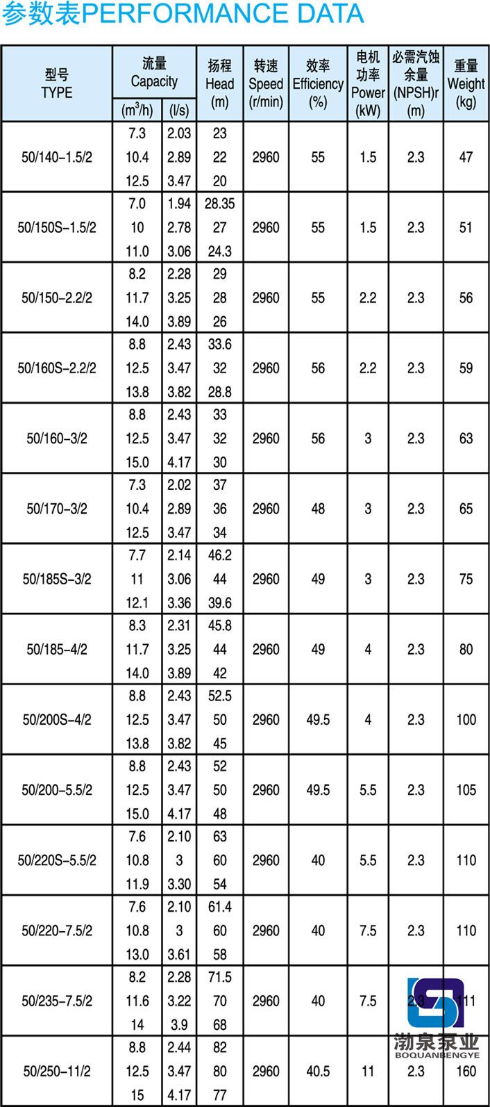 產(chǎn)品介紹 KQL50/140-1.5/2 立式單級離心泵供輸送不含固體顆粒的清水及物理化學(xué)性質(zhì)類似于水的液體之用。同時根據(jù)使用溫度、介質(zhì)等不同在ISG型管道離心泵基礎(chǔ)上派出適用熱水、高溫、腐蝕性化工泵、油泵。該產(chǎn)品具有同效節(jié)能、噪音低、性能穩(wěn)定等特點。 用途: KQL50/140-1.5/2 立式單級離心泵用于空調(diào)、采暖、衛(wèi)生用水、水處理冷卻冷凍系統(tǒng)、液體循環(huán)和供水、增壓及灌溉等領(lǐng)域中無腐蝕的冷水和熱水輸送。 工作條件: 轉(zhuǎn)速:2960r/min,1480r/min或980r/min 流量范圍:1.8~2000m3/h 揚程:≤127m 介質(zhì)溫度:-10℃~120℃ 環(huán)境溫度:最大+40℃;海拔高度小于1000m;相對濕度不超過95% 材質(zhì): 泵殼、泵蓋、葉輪:鑄鐵 泵軸:45#鋼鍍鉻或不銹鋼(2Cr13) 機械密封動、靜環(huán):浸銻石墨、碳化硅 結(jié)構(gòu):結(jié)構(gòu)緊湊的單級泵,適用于現(xiàn)代建筑物的。 產(chǎn)品特點: KQL50/140-1.5/2 立式單級離心泵結(jié)構(gòu)緊湊、合理,泵與電機直接連接,外形美觀,占地面積小效率高,閉式鑄鐵葉輪,葉輪懸臂短,機泵軸完全同心,泵運行平穩(wěn)、可靠,噪音低壽命長,強制環(huán)流沖洗機械密封,免保養(yǎng)、無滲漏。 管道泵選型指南: 例如:KQL80/160-7.5/2 或KQW80/160-7.5 KQL標(biāo)準(zhǔn)立式單級離心泵,KQW標(biāo)準(zhǔn)臥式單級離心泵 80進(jìn)出口直徑 160葉輪名義直徑 7.5/2電機功率/電機極數(shù) ![]() ![]() 因產(chǎn)品生產(chǎn)批次、型號不同,產(chǎn)品圖片及安裝尺寸僅供參考,詳情可聯(lián)系我們的銷售人員了解更多KQL50/140-1.5/2 立式單級離心泵相關(guān)信息!