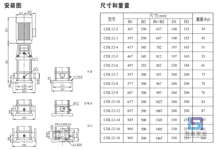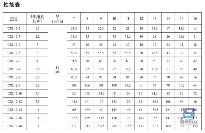 產品介紹 CDLF12-14FSWSC 不銹鋼立式高壓泵是一種多功能產品,可以輸送從自來水到工業液體的各種不同介質,CDLF12-14FSWSC 不銹鋼立式高壓泵適應于不同溫度、流量和壓力范圍,CDL不銹鋼多級泵適用于無腐蝕性液體,CDLF適用于輕度腐蝕性液體。 水:水廠過濾與輸送、水廠分區送水、主管增壓、高層建筑增壓。 工業增壓:流程水系統、清洗系統、高壓沖洗系統、消防系統。 工業液體輸送:冷卻和空調系統、鍋爐給水和冷凝系統、機床配套、酸和堿。 水處理:超濾系統、反滲透系統、蒸餾系統、分離器、游泳池。 灌溉:農田灌溉、噴灌、滴灌。 運行條件 稀薄、干凈、非易燃易爆并不含固體顆粒或纖維的液體。 液體溫度:常溫型 -15℃至+70℃ 熱水型 -15℃至+120℃ 環境溫度:最高+40℃ 海拔:最高1000m CDLF12-14FSWSC 不銹鋼立式高壓泵為安裝標準電機的非自吸式多級離心泵,電機軸通過泵頭用軸聯器直接與泵軸連接,拉桿螺栓將耐壓筒、過流部件固定在泵頭和進出水段之間,泵進出水口在泵底同一直線上;本泵可根據需要配置智能保護器,對泵干轉、缺相、過載等進行有效保護。 電機 電機為全封閉,風冷式二極標準電機。 防護等級:IP55 絕緣等級:F 標準電壓, 50Hz 因產品生產批次、型號不同,產品圖片及安裝尺寸僅供參考,詳情可聯系我們的銷售人員了解更多CDLF12-14FSWSC 不銹鋼立式高壓泵相關信息!