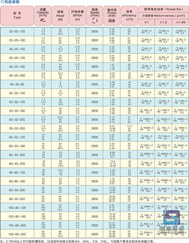 產(chǎn)品介紹 CQB40-25-200 防爆不銹鋼磁力泵(簡稱磁力泵),是應(yīng)用現(xiàn)代磁力學(xué)原理,利用永磁體的磁力傳動實現(xiàn)扭矩的無接觸傳遞的一種新型泵,也就是電機帶動外轉(zhuǎn)子(即外磁鋼)總成旋轉(zhuǎn)時,通過磁場的作用磁力線穿過隔離套帶動內(nèi)轉(zhuǎn)子(即內(nèi)磁鋼)總成和葉輪同步旋轉(zhuǎn),由于介質(zhì)封閉在靜止的隔離套內(nèi),從而達到無泄漏抽送介質(zhì)的目的,解決了機械傳動泵的軸封泄漏,而設(shè)計的全密封、無泄漏、無污染、高效節(jié)能的新型工業(yè)用泵,性能達到國際標(biāo)準(zhǔn)、可替代價格昂貴進口的化工泵。 CQB40-25-200 防爆不銹鋼磁力泵產(chǎn)品優(yōu)點: 1.泵體、葉輪和泵蓋采用CFD計算機流體力學(xué)設(shè)計水力部件進行模塊設(shè)計和精密鑄造。具有流道寬、效率高、汽蝕余量性能好、徑向力小、流道光潔和互換性好等特點; 2.磁鐵選用鐵氧體磁體、釹鐵硼和釤鈷,具有良好的磁性,耐高溫,不退磁;它的磁能積為28兆高斯奧特斯,可耐受溫度的極限是350℃,在常規(guī)冷卻的條件下,限定其最高使用溫度為260℃; 3.軸套、滑動軸承采用高耐磨的碳化硅、石墨、四氟等材料,并設(shè)置了潤滑槽,有效地保證泵的使用壽命; 4.無泄漏,所有密封點采用封閉式靜密封密封,通過磁性聯(lián)軸器驅(qū)動,不需要氮氣密封,安全、經(jīng)濟和高效,解決了介質(zhì)泄漏; 5.無需獨立潤滑和冷卻水,降低了能耗; 6.國際標(biāo)準(zhǔn)軸聯(lián)后拉式設(shè)計,無需拆卸管道,維修方便; 7.臥式安裝,振動小,噪音低,運行平穩(wěn),國際標(biāo)準(zhǔn)設(shè)計,可與標(biāo)準(zhǔn)化工離心泵互換,方便用戶更換和使用; 8.由聯(lián)軸器傳動變成同步拖動,不存在接觸和摩擦。功耗小、效率高,且具有阻尼減振作用,減少了電動機振動對泵的影響和泵發(fā)生氣蝕振動時對電動機的影響; 產(chǎn)品用途 CQB40-25-200 防爆不銹鋼磁力泵廣泛應(yīng)用于石油、化工、制堿、冶煉、稀土、農(nóng)藥、染料、醫(yī)藥、造紙、電鍍、電解、無線電、化成箔、科研機構(gòu)、國防工業(yè)等生產(chǎn)流程中輸送腐蝕性液體,尤其適用于易燃、易爆、易揮發(fā)、有毒、高溫、強堿、有機容劑和貴重液體的輸送。 性能范圍:設(shè)計壓力:1.6-6.4Mpa、流量:2-1400m3/h、揚程:20-200m、功率:1.1-400kw 適用溫度:-30~120℃,采用新型材料耐溫可達-50~450℃; 注意事項:當(dāng)介質(zhì)比重大于1.3mg/cm3時訂貨時應(yīng)說明,禁止空運轉(zhuǎn),禁止輸送含有顆粒或有結(jié)晶的介質(zhì)。 型號意義 ![]() ![]() 因產(chǎn)品生產(chǎn)批次、型號不同,產(chǎn)品圖片及安裝尺寸僅供參考,詳情可聯(lián)系我們的銷售人員了解更多CQB40-25-200 防爆不銹鋼磁力泵相關(guān)信息!