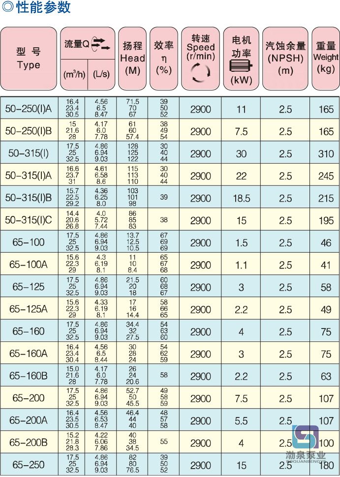 1.吸入壓力≤1.0MPa,或泵系統最高工作壓力≤1.6MPa,即吸入口壓力+泵揚程≤1.6MPa、泵靜壓試驗壓力為≤2.5MPa,訂貨時請注明系統工作壓力。泵系統工作壓力大于1.6MPa時應在訂貨時另行提出,以便在制造時泵的過流部分和聯接部分采用鑄鋼材料。