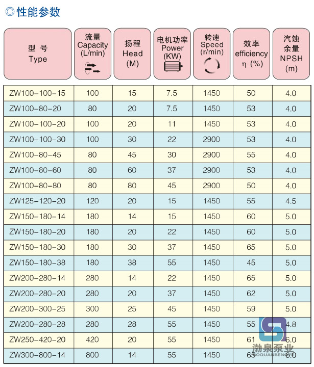產品介紹 ZW100-100-15 自吸式無堵塞排污泵是根據ZX型自吸離心泵及QW型潛水排污泵的結構及性能,借鑒國外同類產品之優點,研制而成的集自吸及排污于一身的新型泵種。既可象一般清水自吸泵那樣不需安裝底閥,不需灌引水,又可抽吸含有大顆粒固體直徑為出口口徑的60%和纖維長度為葉輪直徑1.5倍的污物、沉淀物、廢礦雜質、糞便處理及一切工程污水物和膠質液體,完全減輕人力的勞動強度,而且安裝使用方便,極少維修,具有廣闊的應用市場和發展前景。 適用范圍: ZW100-100-15 自吸式無堵塞排污泵適用于化工、石油、制藥、采礦、造紙、纖維、漿料、紡織、食品、電廠及市政排污工程、公共設施排污、河塘養殖等行業。 產品優點: 1、排污能力強:特殊的葉輪防堵設計,確保了泵高效且無堵塞。 2、高效節能:采用優秀水力模型,效率比一般自吸泵高3~5%。 3、自吸性能好:自吸高度比一般自吸泵高1米,且自吸時間更短。 技術參數: 流量:5-800m3/h; 揚程:12-60m; 電機功率:2.2-55KW; 轉速:1450-2900r/min; 口徑:φ25-φ300; 介質溫度:≤100℃; 自吸高度:4.5-6.0m。 ![]() 結構及工作原理: ZW100-100-15 自吸式無堵塞排污泵主要由泵體、葉輪、后蓋、機械密封、泵軸、軸承座、進口閥、氣液分離管、加水閥門、進、排接管等組成。泵的結構見下圖。 自吸式無堵塞排污泵的工作原理:泵體內設有儲液腔,并通過上方的回流孔和下方的循環孔與泵工作腔相通,構成泵的軸向回流外混式系統。泵停止工作后,泵內腔已儲有一定容積的液體。當泵起動時,泵內的儲液在葉輪的作用下,夾帶著空氣被向上拋出,液體通過氣液分離管的網格回流到工作腔,氣體被排出泵外,使泵內形成一定的真空度,達到自吸的作用。 第二次工作時泵吸入口處裝有單向逆止閥,因此不需再加儲水即可起動。 ![]() ![]() 因產品生產批次、型號不同,產品圖片及安裝尺寸僅供參考,詳情可聯系我們的銷售人員了解更多ZW100-80-45 臥式自吸排污泵相關信息!