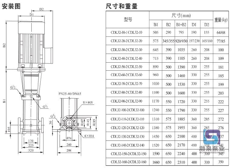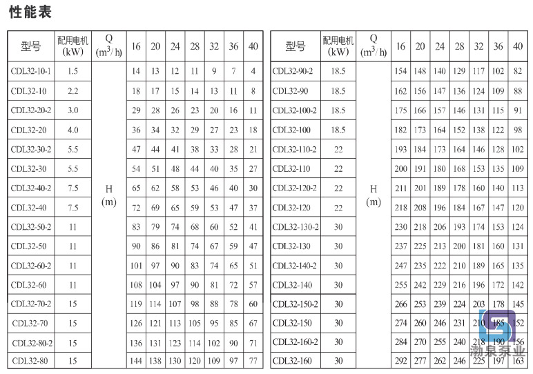 產品介紹 CDLF32-160 不銹鋼304立式多級離心泵是一種多功能產品,可以輸送從自來水到工業液體的各種不同介質,CDLF32-160 不銹鋼304立式多級離心泵適應于不同溫度、流量和壓力范圍,CDL不銹鋼多級泵適用于無腐蝕性液體,CDLF適用于輕度腐蝕性液體。 水:水廠過濾與輸送、水廠分區送水、主管增壓、高層建筑增壓。 工業增壓:流程水系統、清洗系統、高壓沖洗系統、消防系統。 工業液體輸送:冷卻和空調系統、鍋爐給水和冷凝系統、機床配套、酸和堿。 水處理:超濾系統、反滲透系統、蒸餾系統、分離器、游泳池。 灌溉:農田灌溉、噴灌、滴灌。 運行條件 稀薄、干凈、非易燃易爆并不含固體顆粒或纖維的液體。 液體溫度:常溫型 -15℃至+70℃ 熱水型 -15℃至+120℃ 環境溫度:最高+40℃ 海拔:最高1000m CDLF32-160 不銹鋼304立式多級離心泵為安裝標準電機的非自吸式多級離心泵,電機軸通過泵頭用軸聯器直接與泵軸連接,拉桿螺栓將耐壓筒、過流部件固定在泵頭和進出水段之間,泵進出水口在泵底同一直線上;這款管道泵可根據需要配置智能保護器,對泵干轉、缺相、過載等進行有效保護。 電機 電機為全封閉,風冷式二極標準電機。 防護等級:IP55 絕緣等級:F 標準電壓, 50Hz ![]() 因產品生產批次、型號不同,產品圖片及安裝尺寸僅供參考,詳情可聯系我們的銷售人員了解更多CDLF32-160 不銹鋼304立式多級離心泵相關信息!