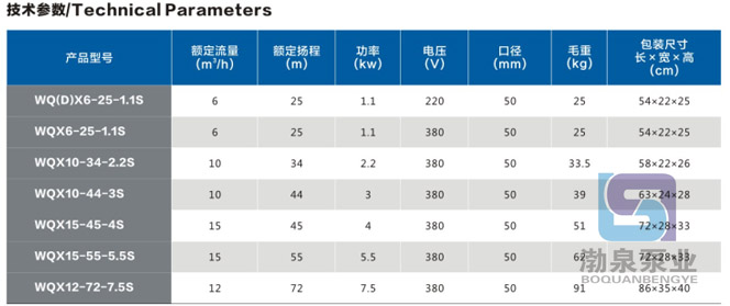 產品介紹 產品概述: 1.50WQX5-25-1.5S不銹鋼高揚程污水泵采用不銹鋼精密鑄造外殼,具有耐腐蝕性,環保型,揚程高,流量大等特點。 2.采用氟橡膠雙端面機封,氟橡膠徑向O型圈密封,有效對環境惡劣的液體進行密封保護作用。 3.電機采用高溫線,F級絕緣,熱保護裝置,有效地延長泵的使用壽命。 4.該潛水排污泵特點揚程高、適用工礦、建筑、海水養殖。 主要用途: 50WQX5-25-1.5S不銹鋼高揚程污水泵適用于建筑樓宇、醫院、住宅小區、市政工程、道路交通及施工、工廠排污、養殖、藥業、飲料、海水鹽水、一般腐蝕性介質中含有的較小的固體顆粒、廢水、污水。 使用條件: 1.以葉輪中心為準,潛入水下深度不得超過5m; 2.輸送介質溫度不高于60C; 3.輸送介質的PH值304(4-10),316(4-13); 4.輸送介質的運動黏度為7x10~~23x10 "m?/S ![]() 因產品生產批次、型號不同,產品圖片及安裝尺寸僅供參考,詳情可聯系我們的銷售人員了解更多50WQX5-25-1.5S不銹鋼高揚程排污泵相關信息!