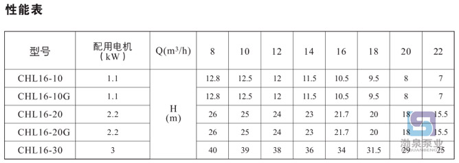 產品介紹 CHL16-20臥式不銹鋼多級泵分為圓筒式與節段式兩種,采用臥式電機和快裝式機械密封,更換非常方便。泵的過流部分均采用不銹鋼(304)材料制成,可適用于輕度腐蝕性介質。該產品可替代國外CH等同類產品。產品投放市場后,以其高效節能、質量可靠、使用范圍廣等特點,深受廣大用戶的喜愛,產品廣泛應用●空調系統 ●冷卻系統 ●工業清洗 ●水處理(水的凈化) ●水產養殖 ●施肥/計量系統 ●環境應用 ●(其他)許多專門特定用途。 特征 1、介質溫度:-15℃~+110℃。