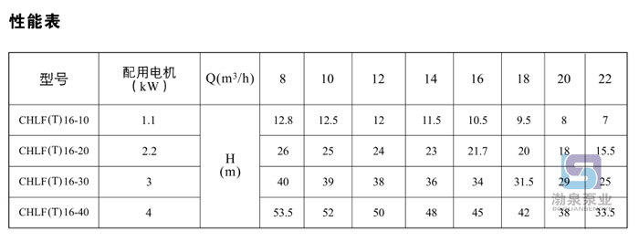 產品介紹 CHLF16-40LSWSC不銹鋼臥式多級離心泵配加長軸電機采用了免修機械密封,緊湊式結構使泵尺寸很小,軸向入口和徑向出口。輕型段式多級離心泵的過流部件均采用不銹鋼材料(304或316)制成,輕型不銹鋼多級離心泵具有低噪音,耐輕腐蝕,外形美觀、體積小、重量輕、使用壽命長等特點,不同材質的硬質合金密封,保證了不同介質輸送均無泄漏;噪音低:兩個低噪音軸承下的水泵,運轉平穩,除電機微弱聲響,基本無噪聲;故障率低:結構簡單合理,整機無故障工作時間大大提高。采用國內優秀水力模型優化設計而成,是理想的新一代高效節能輕型臥式多級離心泵。采用了免修機械密封。輕型段式多級離心泵的過流部件均采用不銹鋼材料(304或316)制成,具有低噪音,耐輕腐蝕,外形美觀、體積小、重量輕、使用壽命長等特點。 二、應用范圍: 主要用于家庭型中央空調循環及工業上液體的傳輸。如脫礦物質水、軟水、凈化系統、輕油等的循環和增壓。 1)小型中央空調循環 2)冷卻系統 3)工業清洗 4)水處理(水的凈化) 5)水產養殖 6)施肥/計量系統 7)環境應用 三、工作條件: 稀薄、干凈、不凝、不爆炸、不含固體顆粒或纖維的液體。 液體溫度: 常溫型-15℃至+70℃ 熱水型+70℃至+110℃ 最大環境溫度:+40℃ 最大運作壓力:10巴 最大進口壓力受最大運作壓力限制 介質酸堿性:PH4~9 四、輸送液體: 1、稀薄、清潔、不含固體顆粒或纖維的非易燃易爆液體。 2、泵可以輸送諸如礦泉水、軟化水、純水、清油和其它輕化工介質。 3、當輸送液體的密度或粘度大于水,如需要,必須配用大功率電機。 4、泵是否適用于某一特定液體由多種因素決定,其中最重要的是氯含量、PH值、溫度和溶濟、油的含量等。 五、曲線條件: 下述條件適用于后面所示性能曲線。 1、所有曲線都基于電機在恒速2900rpm的測量值。 2、曲線容差符合ISO9906,附錄A。 3、測試采用20℃不含空氣的水,運動粘度為1mm2/s。 4、泵的使用參照加粗曲線的性能范圍,以防流量過小產生過熱和流量過大使電機過載等。 六、電機: 電機為全封閉,風冷式二極電機 防護等級:IP55 絕緣等級:F 標準電壓, 50Hz: 1×220-240V 3×220-240V 380-415V ![]() 因產品生產批次、型號不同,產品圖片及安裝尺寸僅供參考,詳情可聯系我們的銷售人員了解更多CHLF16-40LSWSC不銹鋼臥式多級離心泵相關信息!