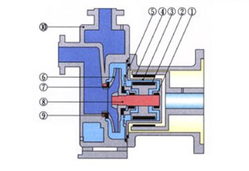| | 1 | 軸 承 | 填充F4 | | 2 | 轉子組合 | 稀土永磁體+不銹鋼 | | 3 | 隔離套 | 不銹鋼 | | 4 | 外 磁 | 稀土永磁體+HT200 | | 5 | 密封圈 | 氟橡膠 | | 6 | 葉 輪 | 不銹鋼 | | 7 | 動 環 | 填充F4 | | 8 | 主 軸 | 不銹鋼 | | 9 | 靜 環 | 碳化硅或氧化鋁陶瓷 | | 10 | 泵 體 | 不銹鋼 | |