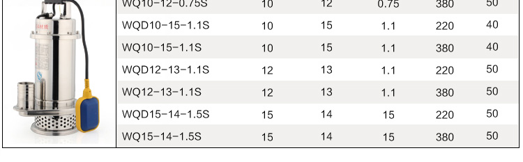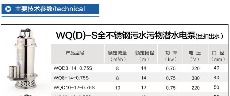 | WQ8-14-0.75S不銹鋼耐腐蝕污水泵 | ||||||||||||||||